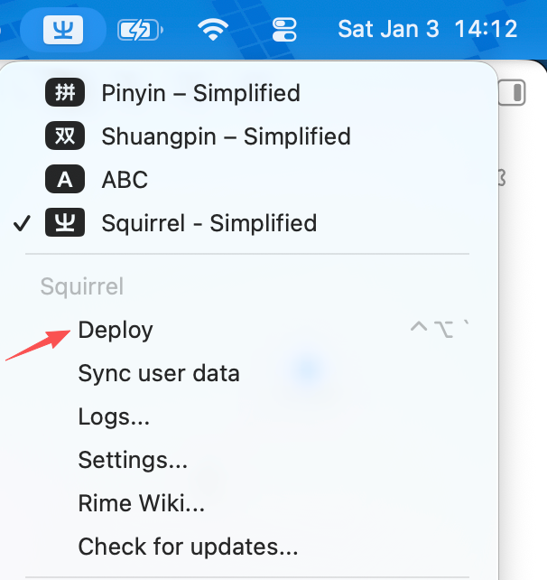 每次你修改完配置,要让配置生效只需要点击鼠须管输入法托盘的重新部署即可